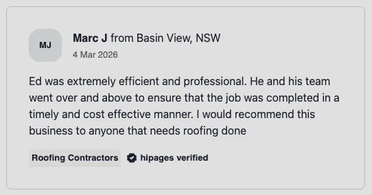 In most cases, replacing an existing roof with the same material (like-for-like) doesn't require council approval. However, some heritage areas or specific councils have different rules. We'll advise you on any permits needed during your quote.